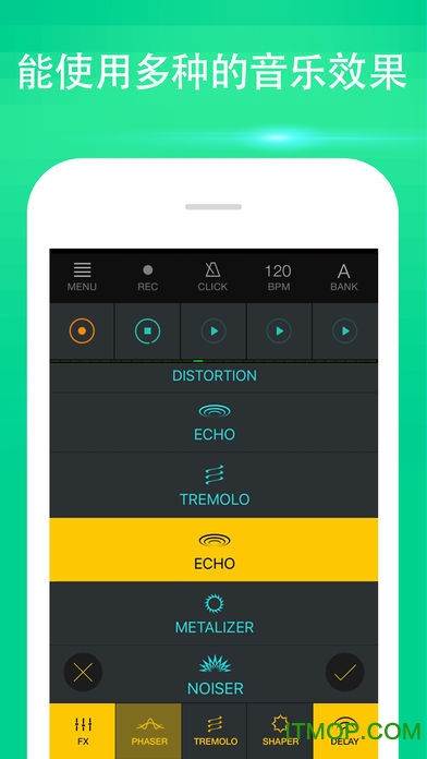 多种音效:Distortion,Tremolo,Echo,Equaliser,Flanger,Phaser及更多。这些专业级音频效果器都经过精心调校,可以直接应用于你的创作中。每个效果器都提供详细的参数调节选项,让用户可以精确控制音色的每个细节。