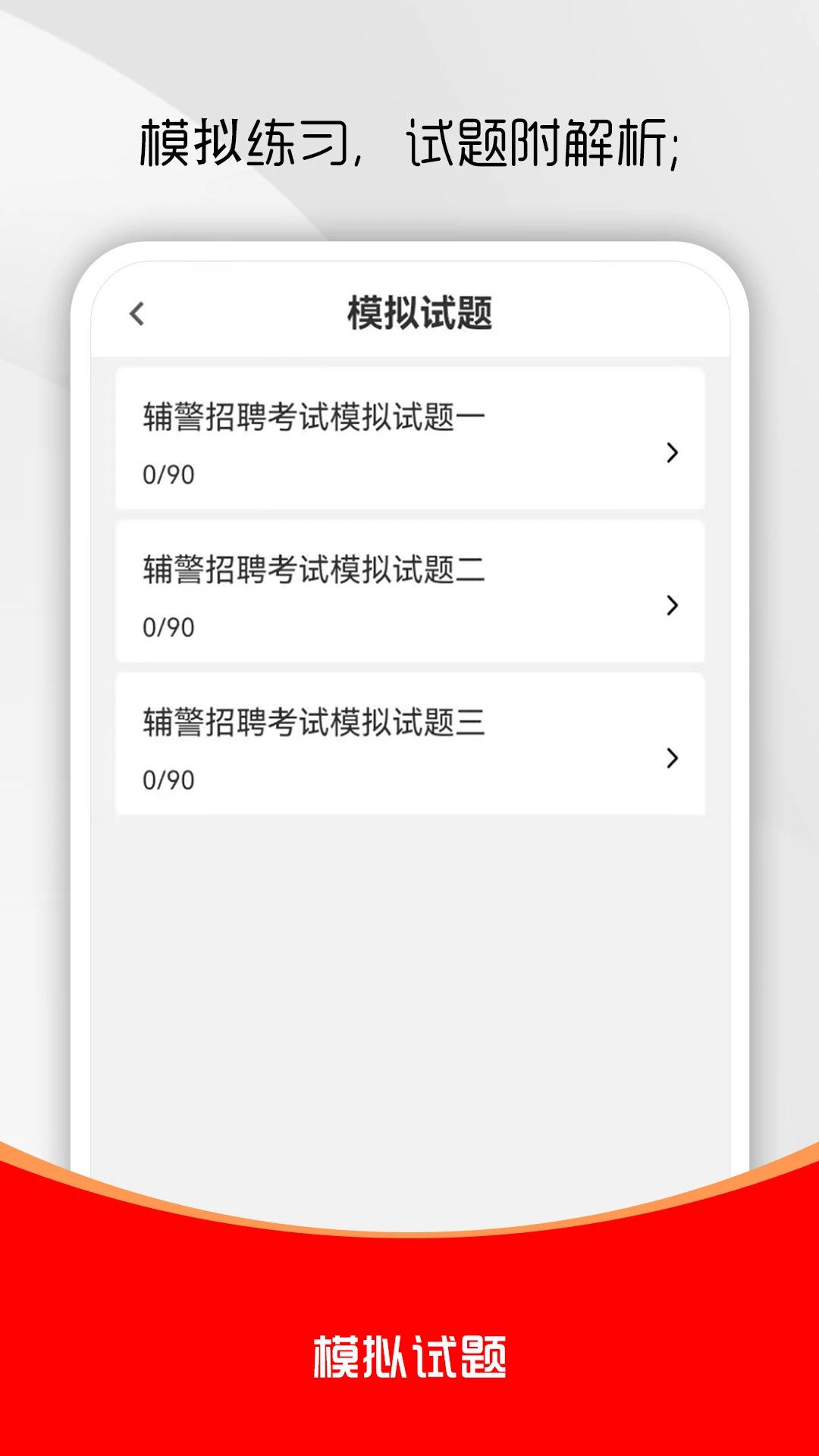 辅警考试刷题库软件是一款专为辅警、协警及警务辅助人员考试设计的备考工具,涵盖公安素质测试、执法资格考试等核心内容。该软件整合了公安基础知识、法律常识、行测、行政执法等多元化题库,通过智能组卷与精准解析帮助考生高效复习。无论是章节专项突破、历年真题演练,还是高频考点强化,都能满足不同阶段的备考需求。其错题自动归档与自定义收藏功能,可针对性查漏补缺,配合模拟押题与密卷冲刺,全方位提升应试能力,助力考生快速掌握考点,实现考试通关目标。