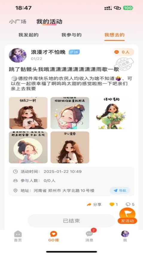 平台上有丰富的活动资源,你可以浏览不同类型的活动,选择感兴趣的项目一键报名,与陌生人变成朋友,共同创造美好回忆。