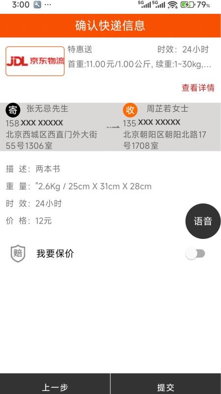 在软件中用户可以选择语音功能语音输出指令进行快递下单,系统会自动识别关键信息并生成订单;