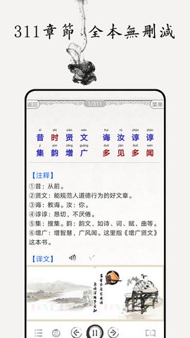 全文翻译:提供所有文章的现代汉语翻译,通过对照阅读,孩子可以轻松掌握文章的核心思想和深刻内涵。