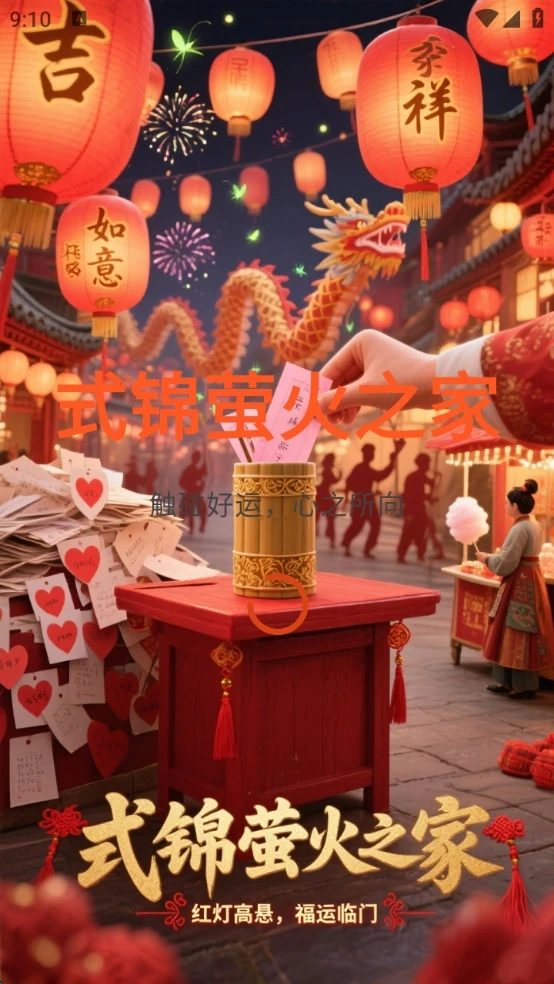 这款小工具操作简单,界面清新,适合各个年龄段的用户使用。你可以用它来测试今日运势,为生活增添一点小期待;也可以和朋友一起分享抽签的乐趣,看看谁的运气更好。式锦萤火之家不仅是一款娱乐工具,更是一种轻松的生活方式。它让你在快节奏的生活中放慢脚步,享受片刻的宁静与愉悦。