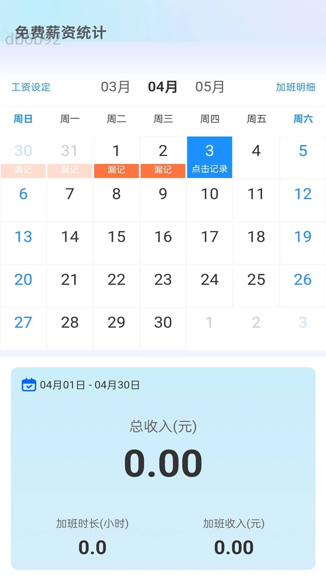 每日薪资统计:记录并统计您的每日薪资,帮助您清晰了解收入情况,便于财务管理。