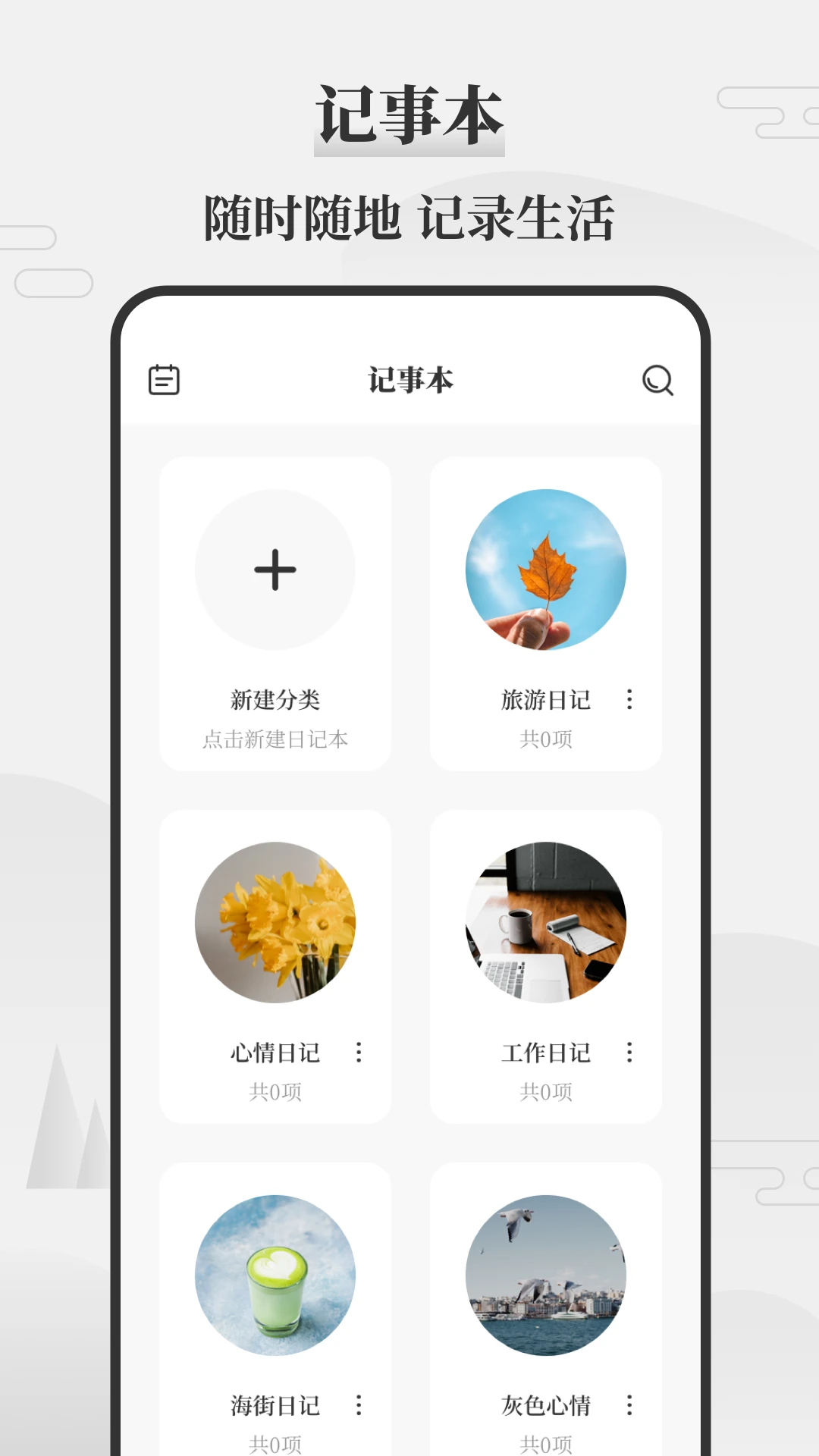 记事本:记录日常生活,多款封面免费使用,将记事与日期集合,随时记录生活,您的生活管理专家!