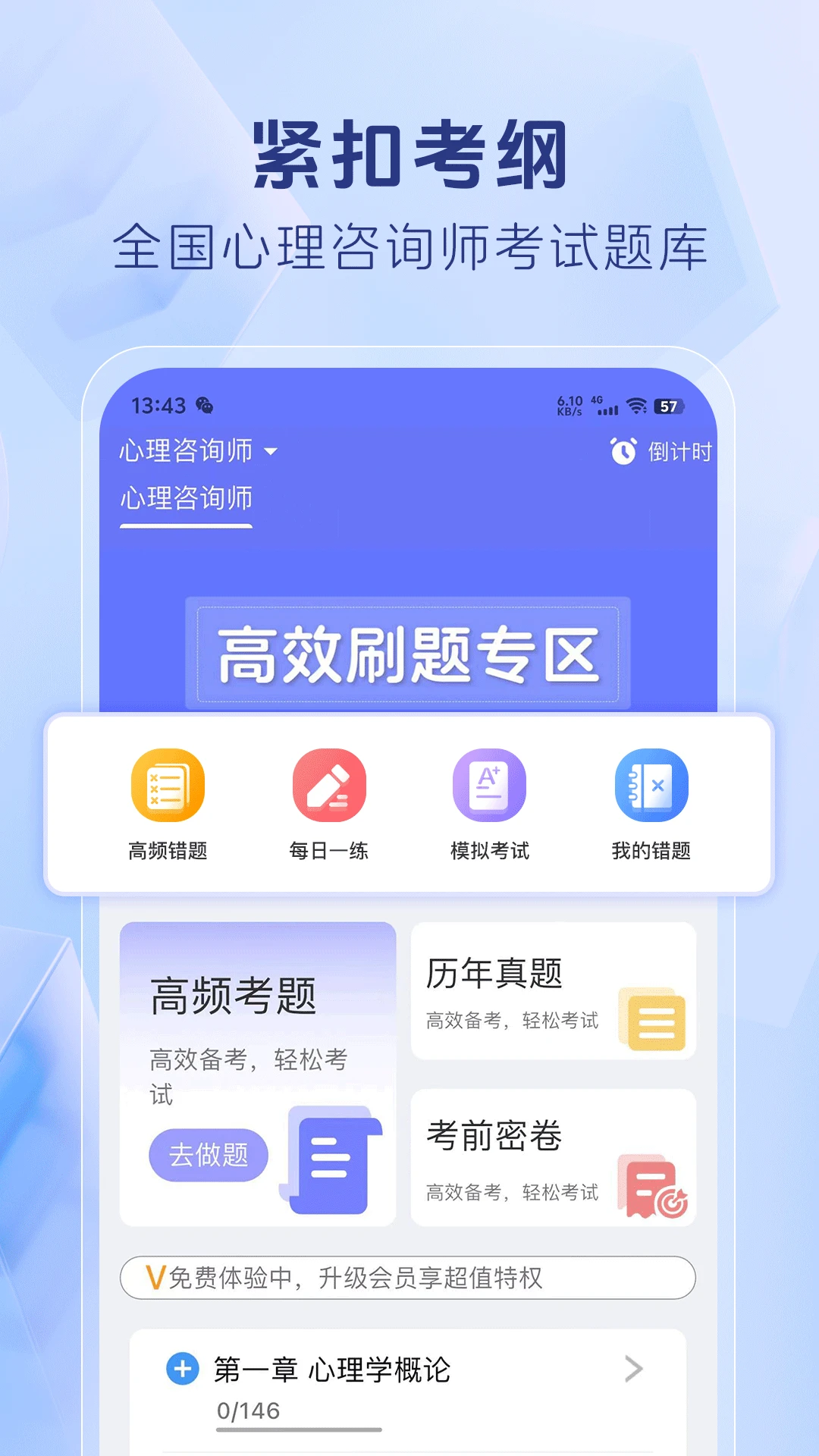 心理咨询师考证题库是一款专为心理咨询师考试备考设计的移动端智能学习工具,集题库练习、真题模拟、错题管理于一体,帮助考生高效攻克考试难点。它紧跟考纲动态,提供科学的章节练习、历年真题和高频题库,搭配智能解析与轻缓存技术,实现随时随地刷题。同时,平台还提供一站式报名服务,从学习到报考全程护航,让备考更省心。无论是零基础学员还是有经验的考生,都能通过系统化训练提升应试能力,真正实现"考试不再难"的目标。