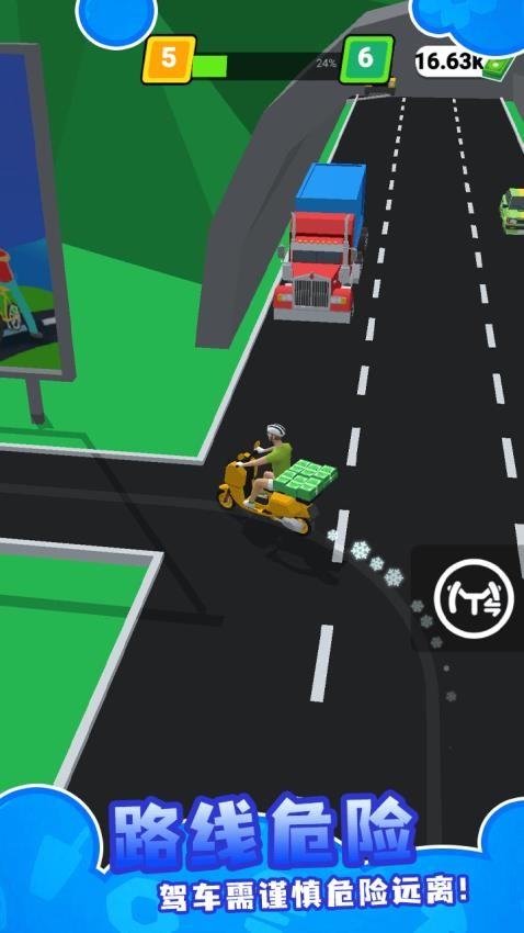 本作以城市外卖配送为核心玩法,真实还原了外卖骑手的完整工作流程。从接收订单、前往餐厅取餐,到最终送达顾客手中,每个环节都经过精心设计,带来身临其境的职业体验。游戏中的城市交通系统会实时变化,玩家需要根据路况信息灵活调整路线,应对突如其来的交通管制或道路施工。每笔订单都有严格的时限要求,超时送达不仅会降低收入,还会影响你的骑手评级。此外,城市各处还隐藏着各种实用道具,如临时加速器、免罚单特权等,合理使用这些道具能让你在关键时刻化险为夷。