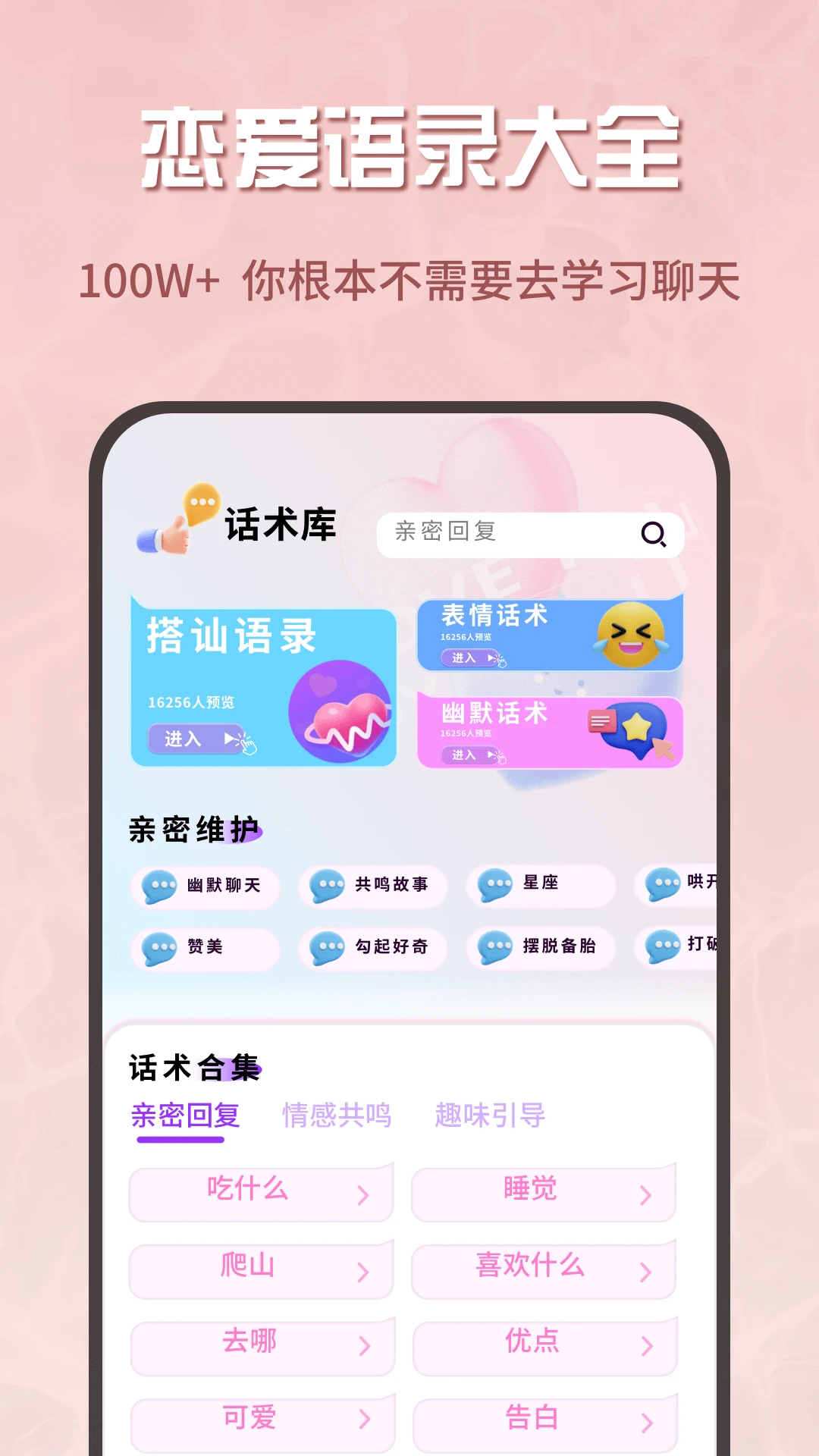 场景分类导航:按约会、表白、日常等场景归类话术,快速找到对应情境的沟通模板