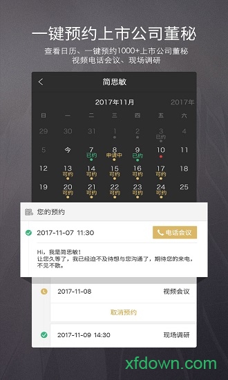 平台提供全面的预约记录管理功能,详细记录每次预约的时间、日期及方式,方便您随时查阅;智能名片识别系统可快速添加并管理联系人信息,助您高效拓展人脉;一键订阅功能让您轻松关注感兴趣的上市公司,实时获取公司最新动态;专业的直播互动系统支持您与路演方进行面对面交流,深入探讨投资话题;专业的投资问答板块汇集了众多机构投资者,为您解答各类投资疑问;上市公司日历功能让您清晰了解各公司的重要日程,并通过电话直接沟通。