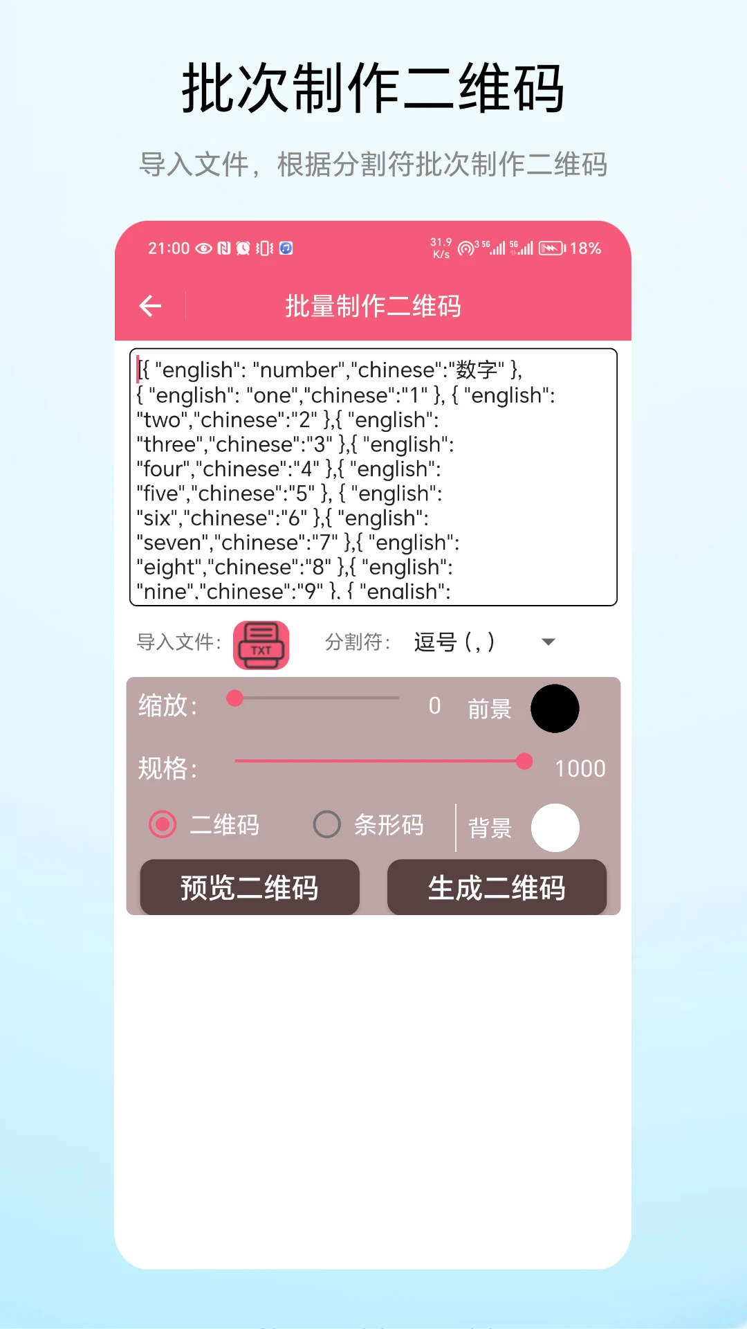 智能解析技术:自动识别导入文件中的分隔符,精准解析内容并生成对应二维码,减少人工干预。