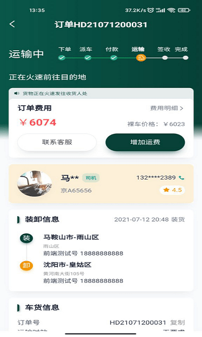 订单详情展示功能:每个订单都包含完整的货物信息、运输要求、价格明细等20余项关键数据,并支持历史订单对比分析,帮助货主做出最优决策。