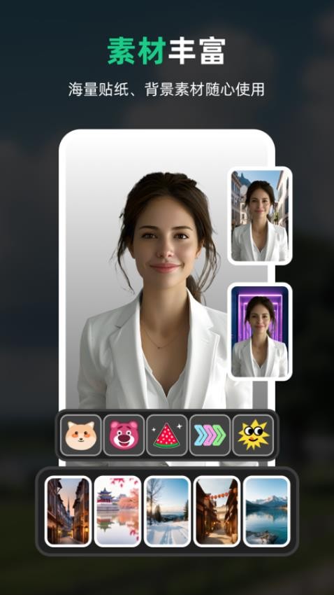 软件内置海量精美背景素材,用户可以根据视频主题或个人喜好一键更换视频背景,轻松实现场景切换,提升视频视觉效果。