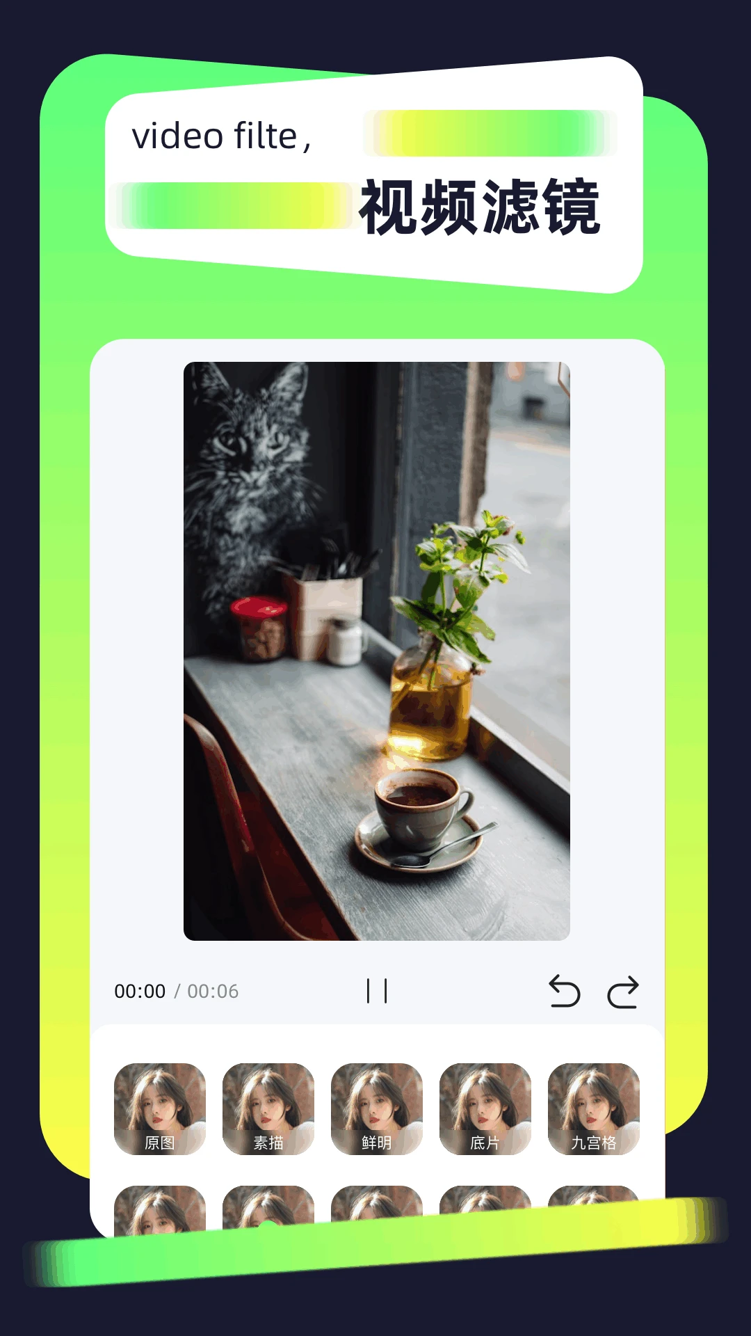 滤镜效果:内置多种滤镜,一键应用,提升视频质感。