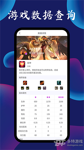 没有详细的设备清单、设备综合路径等信息,所有装备数据都保持最新版本同步更新。提供关于英雄、技能介绍、职业束缚、种族束缚等的详细介绍,这些资料库会随着游戏更新而即时调整。免费且功能强大,有详细的数据,如果你想成功地吃鸡肉,你可以试试,这款工具能显著提升你的胜率和游戏体验。