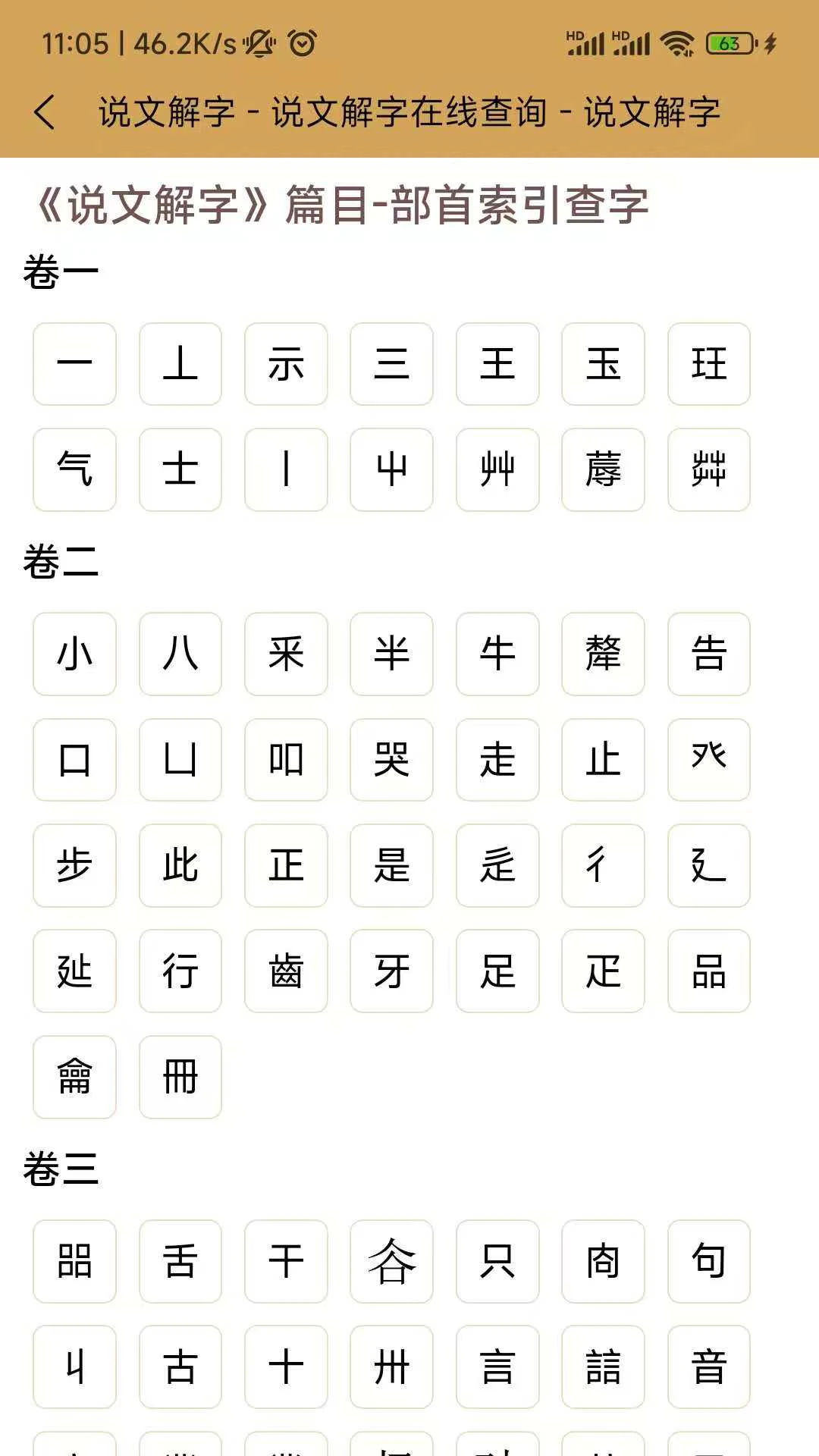 “汉字探源说文解字”是研究许慎《说文解字》、解读汉字起源、学习篆书汉字的工具。《说文解字》原作者许慎,作于东汉年间,是中国最早的系统分析汉字字形和考究字源的语文辞书。本应用提供的汉字《说文解字》,字头采用小篆字体呈现,内容主要包括四个版本:1.还原东汉许慎《说文解字》原稿;2.北宋徐铉『大徐本』《说文解字》(清代陈昌治重新刊印);3.清代段玉裁以『大徐本』为底稿所作《说文解字注》;4.现代白话注解《说文解字》。以下是常用功能介绍:【篇目查字】:《说文解字》原书篇目排列,共十五卷,其中一至十四卷为文字解说,十五卷为叙目,每卷都分上下两篇,实为三十卷。共收字头9353个,重文(古文、异体等)1163个,字头以小篆为准。【汉字查询】:本软件提供汉字查询功能,可直接输入需要查找的汉字。对《说文解字》未收录的简体字,系统自动匹配其对应的繁体字字头。【汉字详解】:汉字在《说文解字》中的原文内容,含东汉许慎《说文解字》原稿,北宋徐铉『大徐本』《说文解字》,清代段玉裁所作《说文解字注》,现代白话注解《说文解字》。