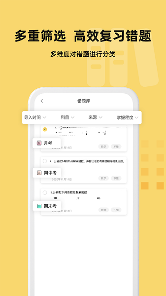 软件功能强大,一个app即可满足所有错题管理需求。家长可以随时查看孩子的全部错题,即使孩子升学也不用担心数据丢失。软件支持按科目整理错题,并可根据导入时间、错题来源和掌握程度进行智能筛选,让错题管理更加精准。多年级存储功能让错题数据长期保存,切换年级时错题不会消失,特别适合多子女家庭或家长使用。用户还能将筛选后的错题快速组卷,软件会自动生成相关练习题并排版成标准试卷格式。批量录题功能更是省时省力,相比传统错题本需要一题一题手动裁剪,刺猬可以一次性拍照自动框选试卷中所有题干,供你挑选并保存,大大提升了学习效率。