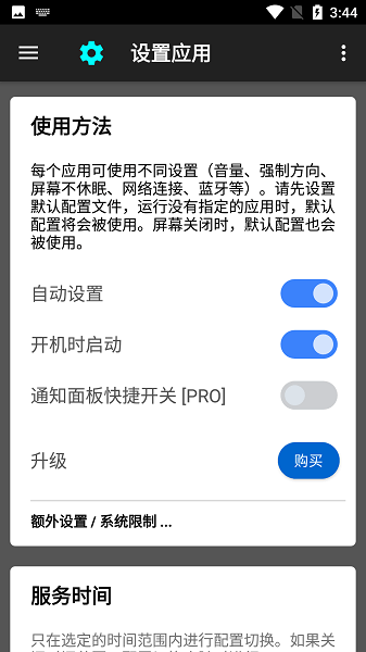 每个应用程序都有不同的使用场景和需求,设置应用(SettingsApp)能够帮助您在不同设置之间自动切换,从而让您的使用体验更加顺畅。无论是调整音量、强制旋转屏幕方向、保持屏幕常亮,还是管理网络连接和蓝牙功能,这款软件都能轻松应对,而且无需root权限!您可以针对每个应用创建独立的配置文件(profile),当应用启动时,系统会自动加载对应的配置。此外,您还可以设置默认配置文件,当运行未指定的应用程序或屏幕关闭时,系统会自动应用默认设置。这不仅节省了您手动调整设置的时间,还能有效延长电池续航。例如,您可以根据需要动态调整屏幕亮度,或在不需要时关闭耗电功能,从而让手机更加高效地运行。