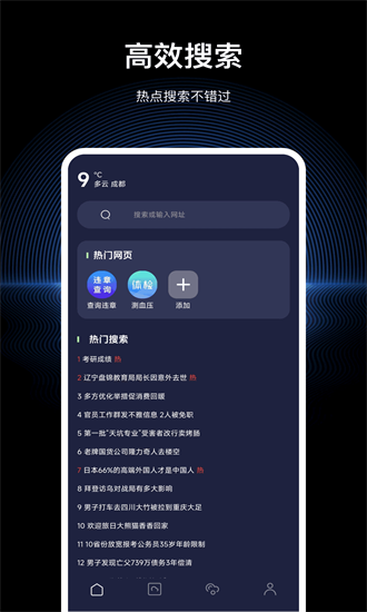 【极速浏览】全新升级的搜索引擎,采用智能预加载技术,网页加载速度提升50%,带你体验极速浏览器的新世界。