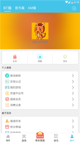 会员中心管理,完善的账号系统,方便查看个人信息、充值记录和游戏收藏