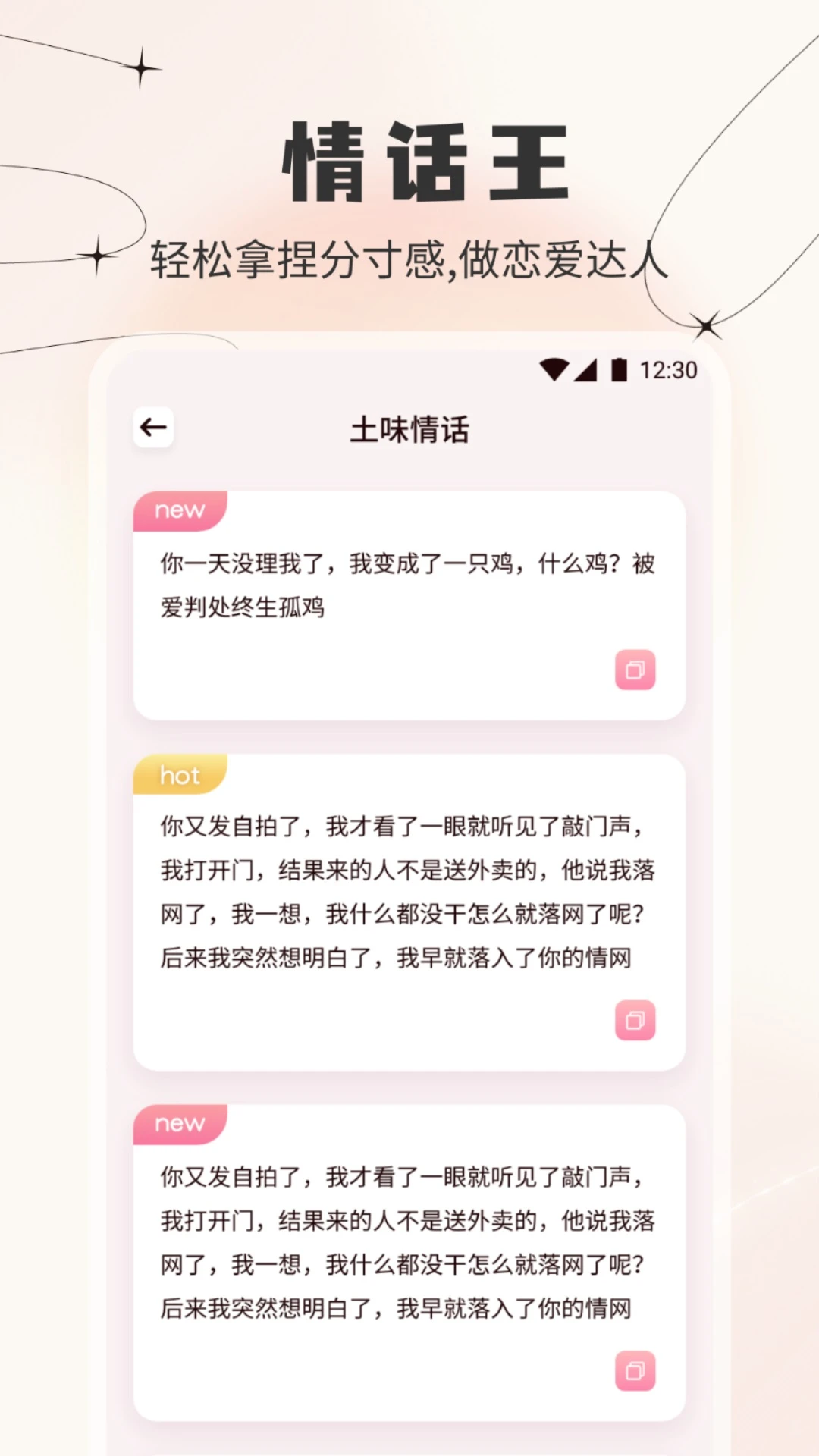 每日更新海量土味情话库,涵盖表白、撒娇、幽默等多种风格