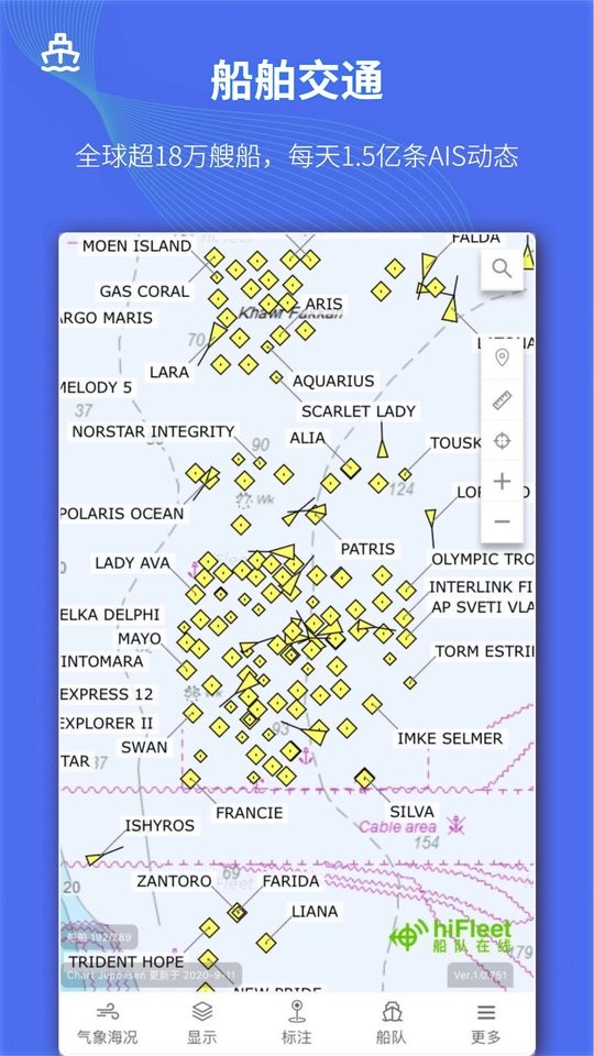 船队在线HiFleet作为全球领先的船舶跟踪与风险预警平台,已获得超过15万航运用户的信赖。该软件整合了全球3000多座岸基AIS基站和79颗AIS卫星的实时数据,并结合海洋气象、电子海图、海盗事件、地震预警以及航行警告等多维度信息,为用户提供全面的航运服务。通过船队在线hifleet,用户可以实时追踪全球船舶位置,获取精准的风、浪、流、气压及台风预报,同时还能享受船队管理、航线监控和风险预警等高级功能,确保航行安全无忧。