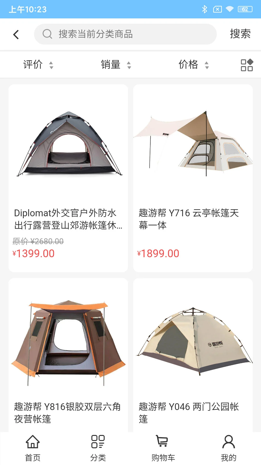 支持特色户外商品在线购买,包括露营装备、旅行用品等。