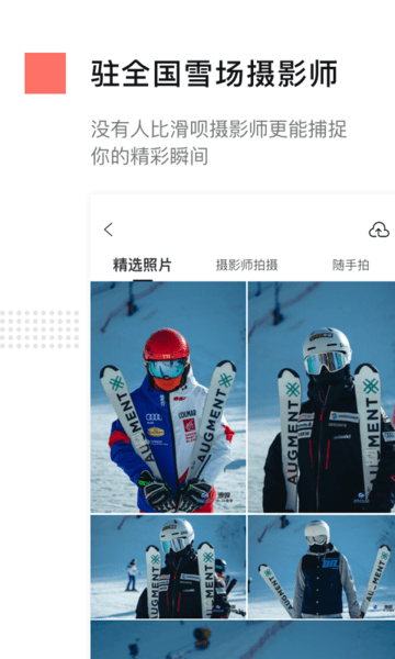 【照片墙】汇聚了国内外各大雪场、俱乐部和赛事的数百万张高清照片和全景图片,让你足不出户就能欣赏到世界各地的雪场美景和精彩瞬间。