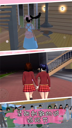 需要灵活应对,巧妙躲避追捕者的目光,利用场景中的遮掩物来逃脱追击。玩家可以躲进储物柜、藏在樱花树后,或是利用地形优势甩开追兵,每个场景都设计有多个隐蔽点和逃生路线。