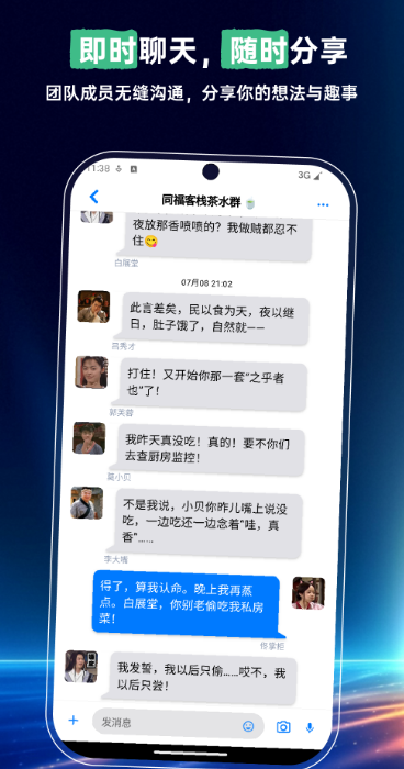 独创的情景模式切换功能,工作模式下自动屏蔽娱乐内容,生活模式下则开启更多趣味互动元素。消息定时销毁功能支持设置1秒到30天的任意时长,销毁后无法通过任何方式恢复。群组管理方面,管理员可以设置发言权限、禁言特定成员,还能查看详细的成员活跃度统计报告。