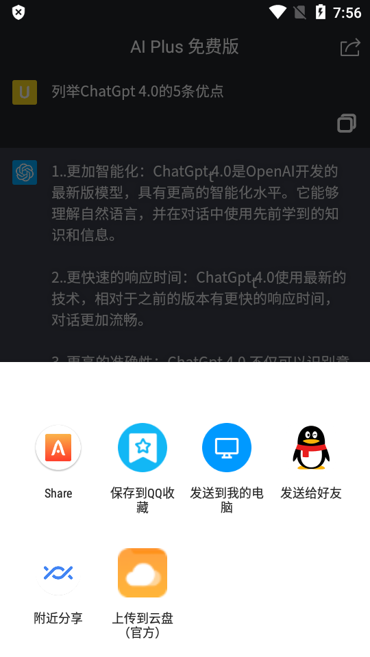这款软件基于OpenAI的ChatGPTgpt-4.0-plus模型开发,完全免费向用户开放。其简洁的操作界面让用户只需输入问题就能快速获得答案,没有任何使用门槛。更值得一提的是,aiplus没有任何功能限制,采用了先进的处理机制,确保用户体验流畅自然。