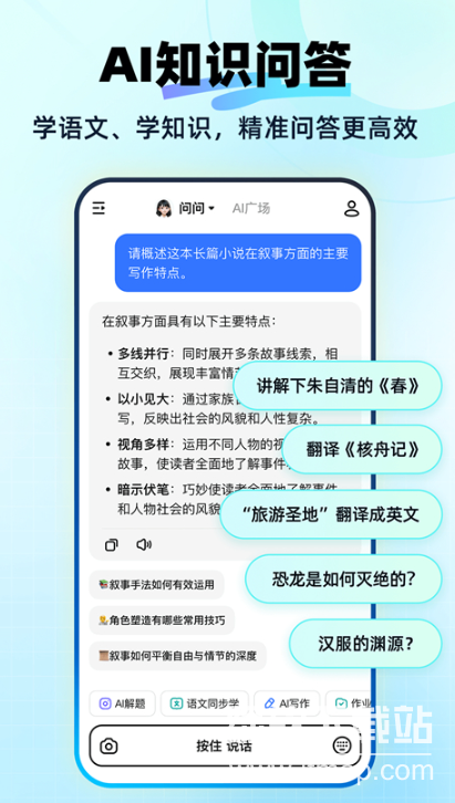 快问AI官方app是一款基于最新GPT-4技术打造的全能型中文学习助手,专为K12至研究生阶段的学习者设计。这款应用不仅拥有强大的智能拍题解析功能,还集成了多语言翻译、AI写作辅助等多样化工具,真正实现了全场景学习需求覆盖。从小学基础课程到研究生专业课题,快问AI都能提供精准的学习支持,用户只需简单选择对应年级,就能开启个性化的智能学习体验。应用内置的快快和问问两个AI模型伙伴支持多种声线切换,包括童声、成年声线及方言模式,让学习过程充满趣味性。在核心技术方面,快问AI采用最先进的GPT-4架构,确保解题思路清晰、翻译结果准确、写作内容丰富多样。同时,应用高度重视用户隐私保护,通过AES-256加密技术和SSL/TLS传输协议双重保障数据安全,为用户打造一个既高效又安心的学习环境。