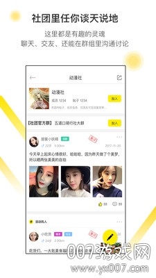 兴趣社团:这里各类型的社团云集,吃喝玩乐、运动健身、生活技巧、动漫游戏,应有尽有。我们会根据你的喜好,为你量身推荐社团。你可以在社团里结交到和你兴趣一致、志趣相投的朋友,参与社团专属活动,体验专属福利。每个社团都有专业的管理团队,确保交流氛围健康向上。