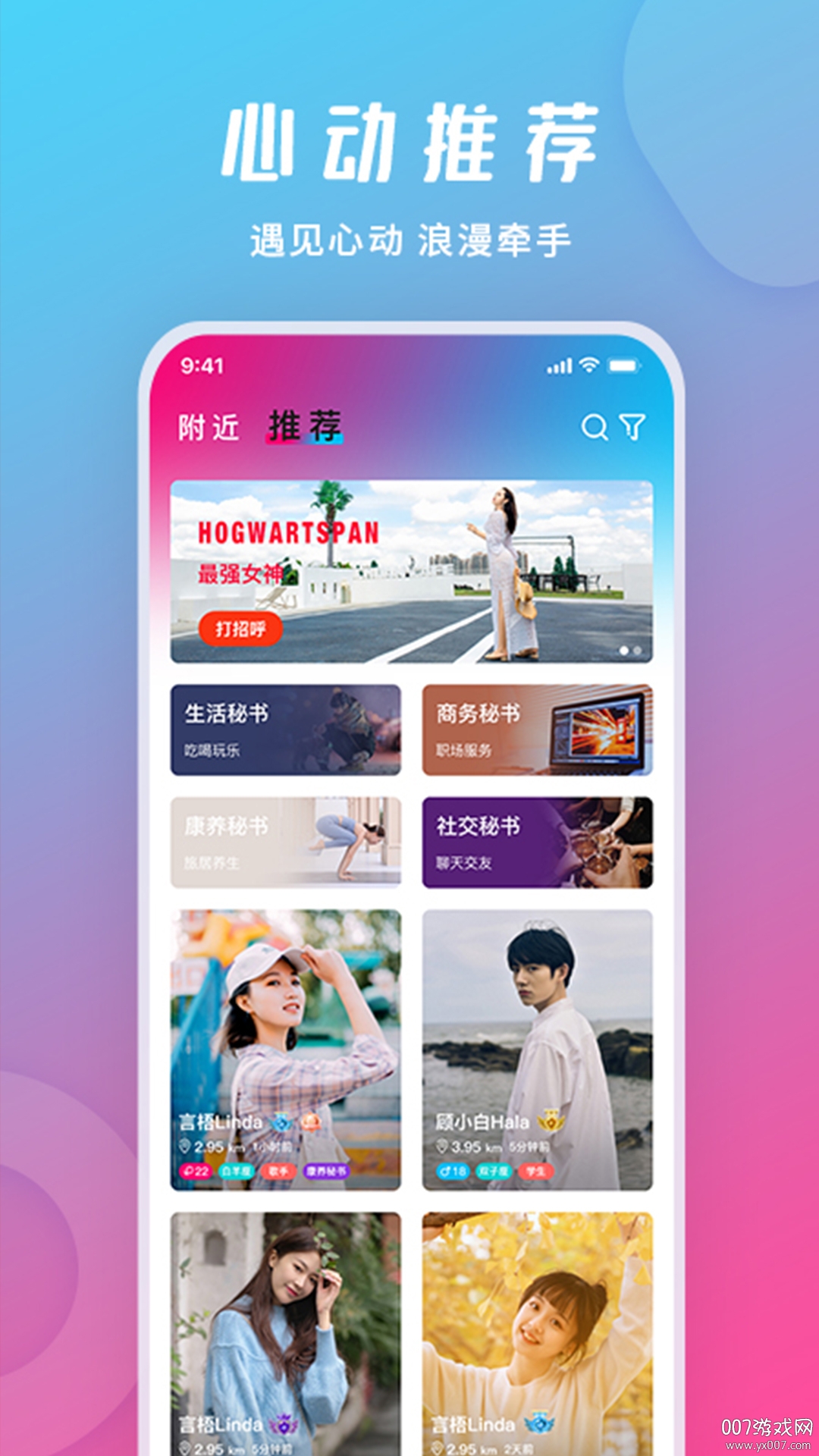 潮玩派智能匹配版不仅是一个简单的社交平台,更是一个汇聚了众多优秀人才的多元化服务社区。平台聚集了一技之长、高颜值、拥有空闲时间的新生代群体,帮助他们将时间和价值高效变现。服务场景丰富多样,涵盖秘书服务、康养秘书、社交秘书等多种类型,满足用户在不同场景下的个性化需求。如果你对产品有任何疑问或建议,欢迎关注公众号[潮玩秘书],联系在线客服获取帮助。