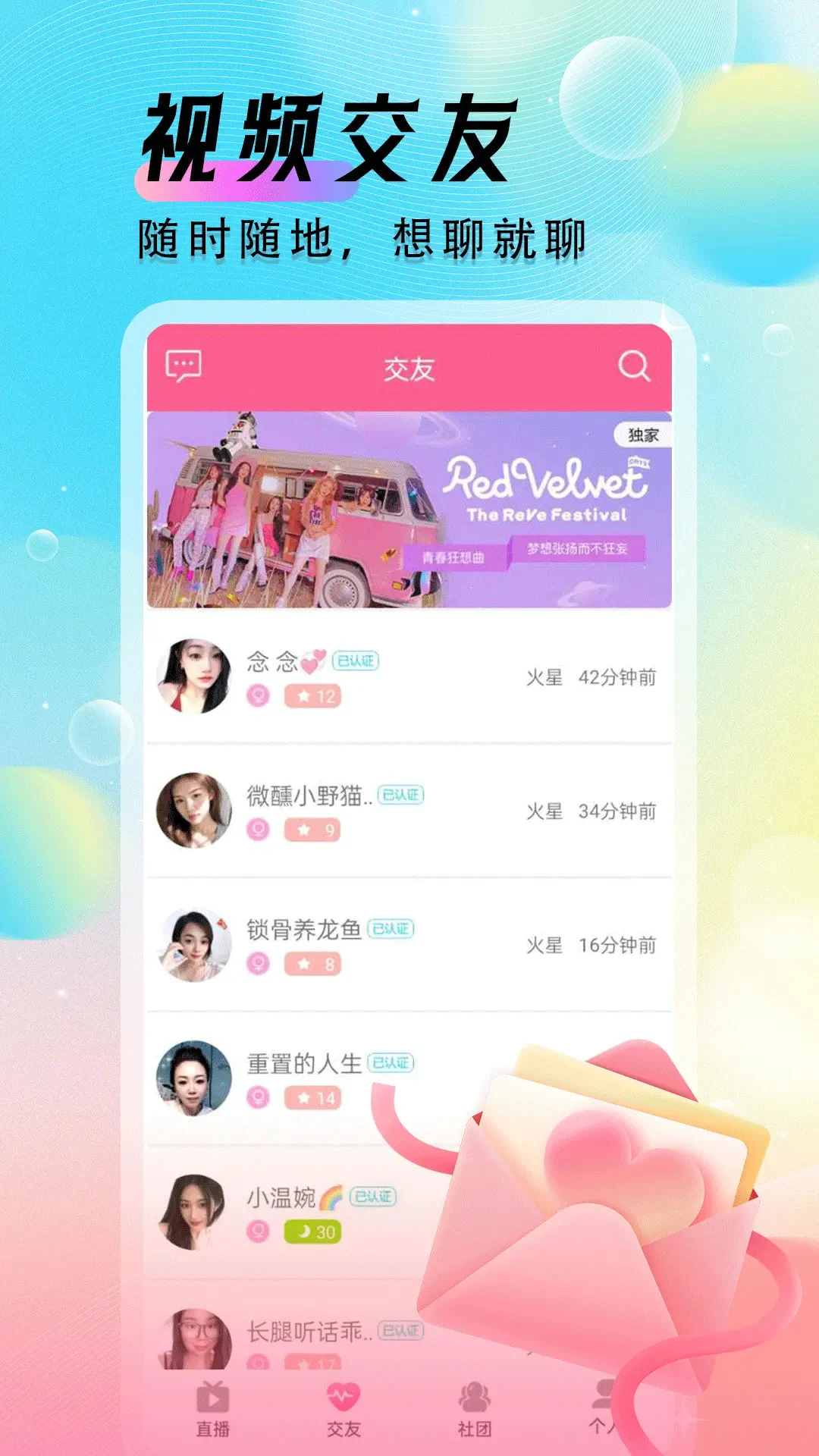 真人视频聊天:支持高清视频通话,让用户面对面交流,拉近彼此距离。