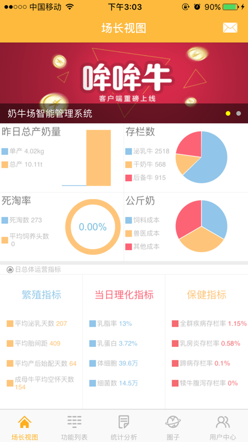 最新版本新增了多维度数据分析报表,包括饲料转化率、产奶效率等专业指标。首页新增的公斤奶参数功能,可以直观展示每公斤奶的生产成本,帮助管理者优化资源配置。系统性能也得到进一步提升,数据加载速度更快,操作响应更流畅。