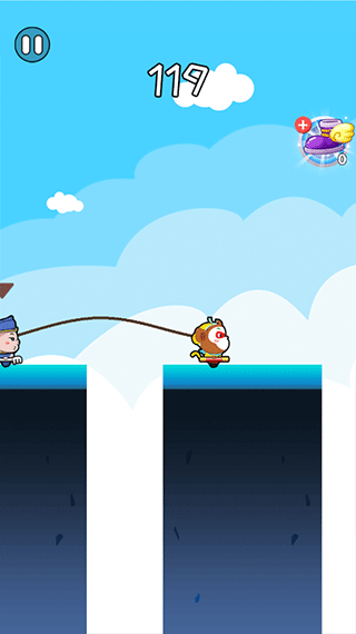 游戏采用简单直观的触控操作方式,玩家通过点击屏幕控制孙悟空和猪八戒缓慢向前移动。长按屏幕可以让角色进行跳跃,精准地落在平台上,平台跳跃得越多获得的分数就越高。在移动过程中要特别注意角色头顶的箭头标识,带有箭头的角色表示当前可操控对象。游戏巧妙地将双人协作融入操作中,需要玩家时刻关注两个角色的位置和状态,做出合理的操作决策。