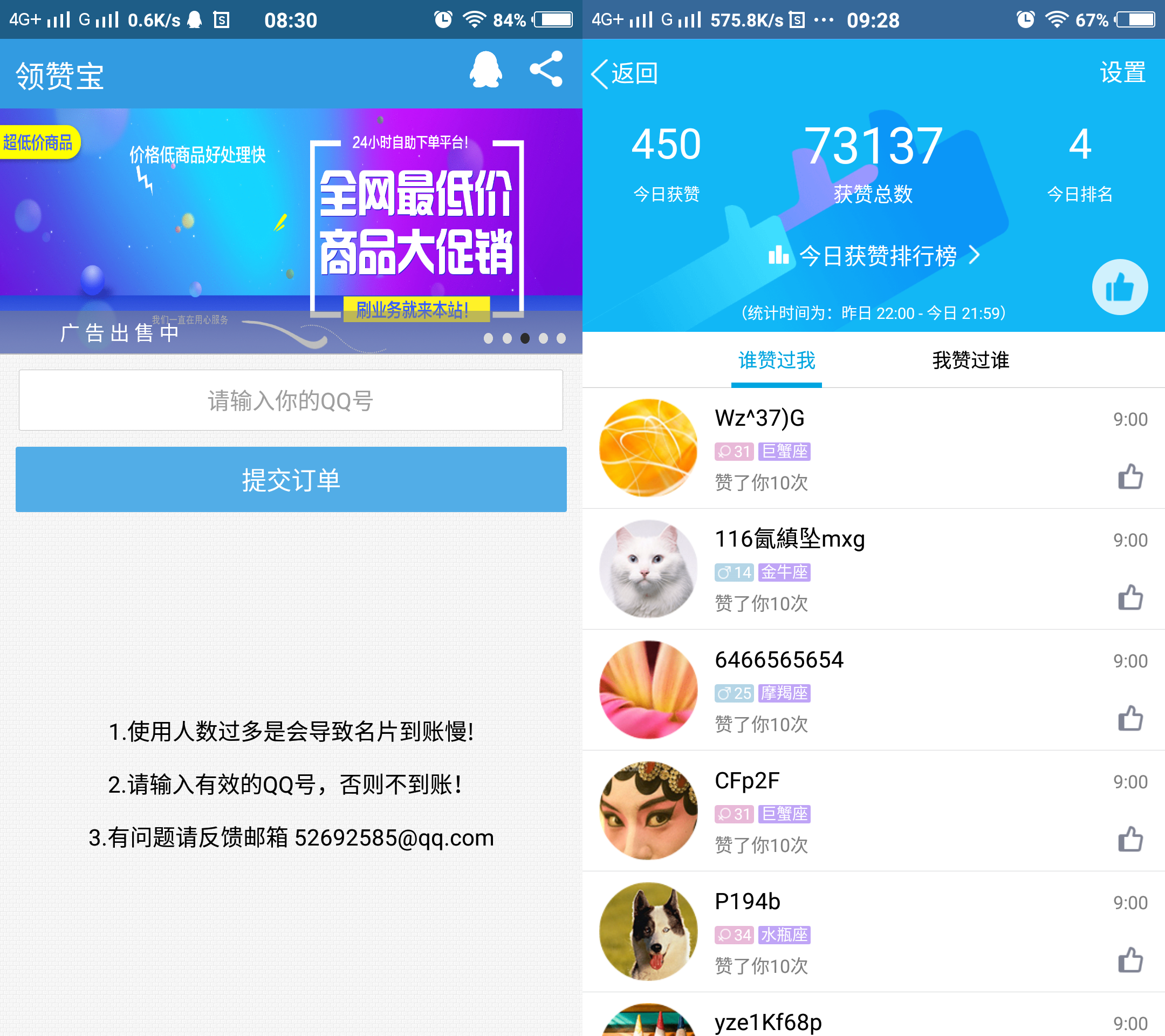 领赞宝App无限刷赞软件是一款专为QQ用户设计的智能辅助工具,能够帮助用户快速提升QQ名片人气。通过该软件,用户可以轻松实现自动刷赞功能,无论是为自己还是好友增加人气都变得异常简单。软件采用先进的技术手段,确保点赞过程高效稳定,同时严格保护用户隐私安全。无需复杂操作,只需简单几步设置,即可享受24小时不间断的自动点赞服务,让您的QQ名片瞬间成为人气焦点。