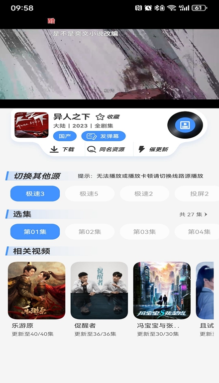高清播放体验:提供高清的影视播放,让用户能够享受到更加清晰、流畅的观影体验。无论是在手机、平板还是电视上观看,都能获得高质量的画面效果。支持HDR和杜比音效技术,带来影院级的视听享受,让您仿佛置身于电影场景之中。
