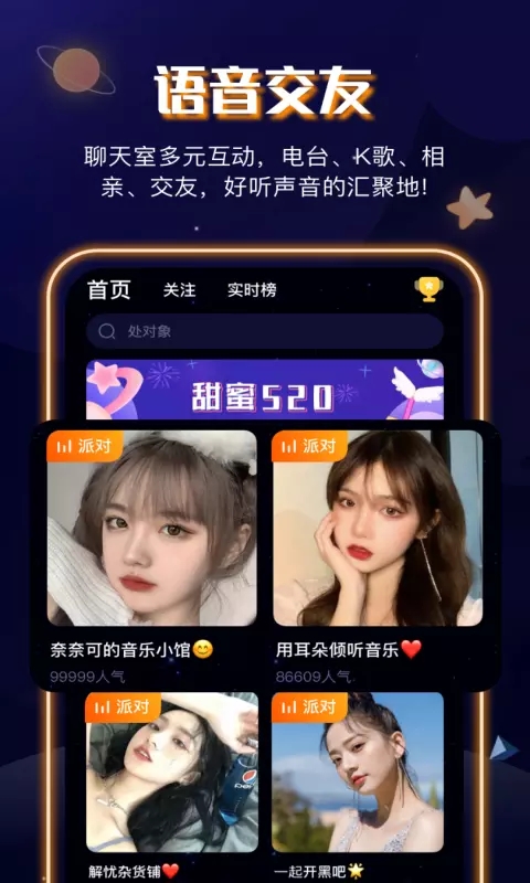 音筒app的最大特色在于其多元化的社交玩法。在这里,你可以与感兴趣的TA发展各种关系,无论是恋人、知己还是密友,都能找到合适的相处方式。平台提供了丰富的互动功能,包括语音交友、开黑游戏、PIA戏、角色扮演等,满足不同用户的社交需求。同时,音筒还不断更新玩法,让用户能够持续体验新鲜的社交乐趣。通过简单易用的界面设计,用户可以快速了解各种互动服务,实时感受最完整的交友体验。