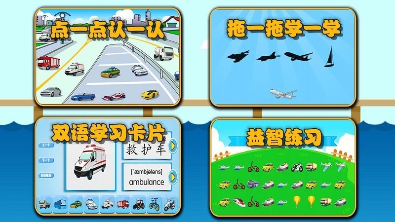 这款APP拥有便捷的操作功能,只需轻轻一点即可开启学习之旅,让孩子们快速了解各种交通工具的知识。软件特别设计了互动触摸功能,当宝宝触摸中文、英文或交通工具图标时,系统会分别发出对应的中文名称、英文名称以及交通工具的真实声音,增强学习的趣味性和互动性。此外,APP还涵盖了城市、乡村、空中、海上等多种场景,将汽车、飞机、船只等交通工具生动地展现在孩子们面前,帮助他们全面认识交通工具的多样性。