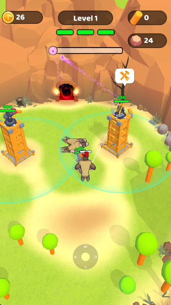 设施升级多样:游戏提供了丰富的设施升级系统,从伐木场的自动锯木机到采石场的矿石破碎装置,从基础的木质围墙到高级的魔法防御塔,每类设施都有独特的发展路线。升级不仅会显著提升效率或防御能力,还会带来视觉上的变化,让玩家直观感受到基地的成长。部分高级设施还能解锁特殊功能,如自动修复、资源加成等。