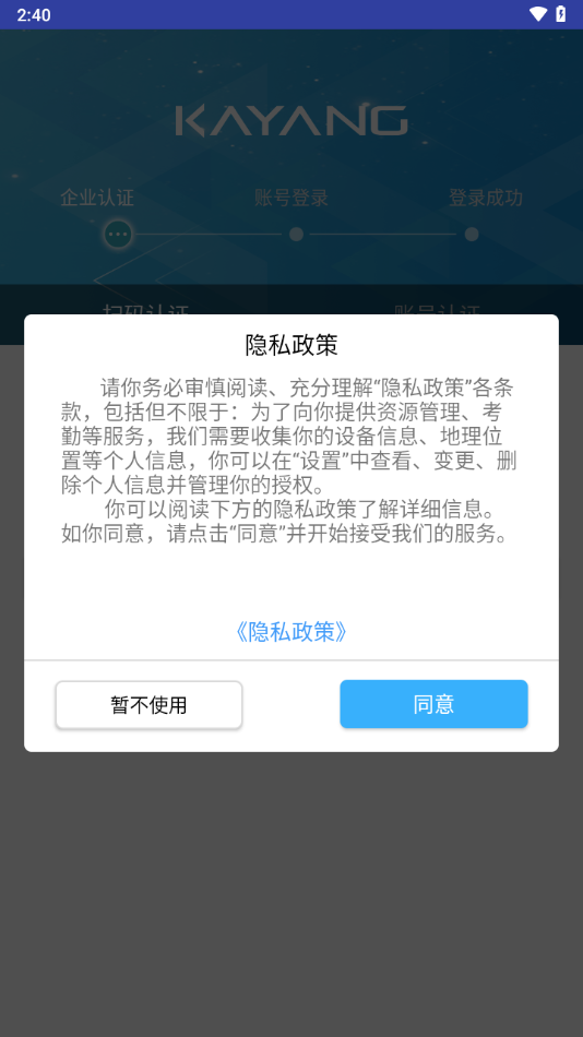 首先需要在本站下载并安装最新版本的kayangehr软件,安装完成后首次使用时需要仔细阅读并同意相关服务条款和隐私政策。登录时需使用公司认证的有效账号,该账号通常由企业管理员统一分配。如果遇到账号问题或忘记密码,建议联系企业系统管理员进行重置。对于新用户,管理员会提供专属的认证二维码,通过扫描即可完成账号注册和认证流程。若仍无法登录,可检查网络连接是否正常,或联系平台客服寻求技术支持。