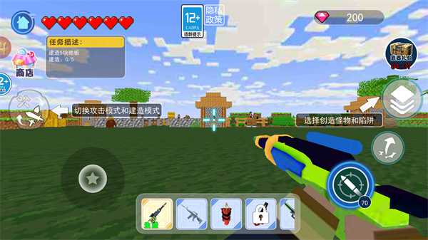 点击"开始游戏"按钮后,你将进入一个充满可能性的世界。游戏提供了丰富的武器库,包括各种枪械和爆炸物,玩家可以根据自己的喜好自由选择。你可以选择攻击模式,与怪物展开激烈战斗;也可以选择建造模式,发挥创意建造独特的建筑。