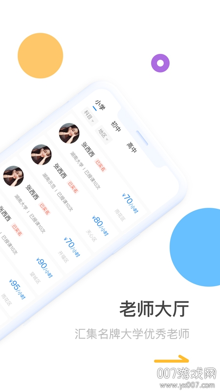 为家长和学生提供一个专业的家教老师服务平台,可以自由选择老师,支持按科目、年级、教学风格等多维度筛选;