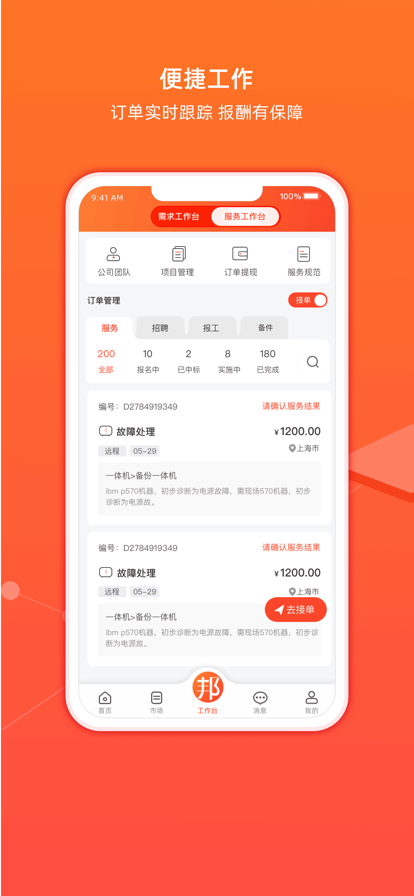 智能匹配,海量订单:基于大数据分析的智能推荐系统,根据您的专业技能和服务区域,精准推送高匹配度客户需求;