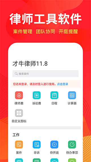 才牛律师v11.8.1安卓版提供全方位的法律服务支持,包括但不限于以下核心功能:律师费精准计算、诉讼费智能核算、开庭时间智能提醒、案源高效添加与管理、案件全流程跟踪、海量合同范本参考、专业律师事务所咨询、优质律师资源对接等。这些功能模块相互配合,构建起一个完整的律师工作生态圈。