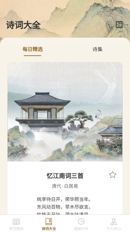 一本智慧app是一款专注于诗词学习和知识积累的优质学习软件,为广大诗词爱好者打造了一个内容丰富、功能全面的学习平台。通过这款软件,用户不仅可以系统地学习古今中外的经典诗词作品,还能深入了解每首诗词背后的文化内涵和创作意境,从而全面提升自身的文学素养和审美能力。