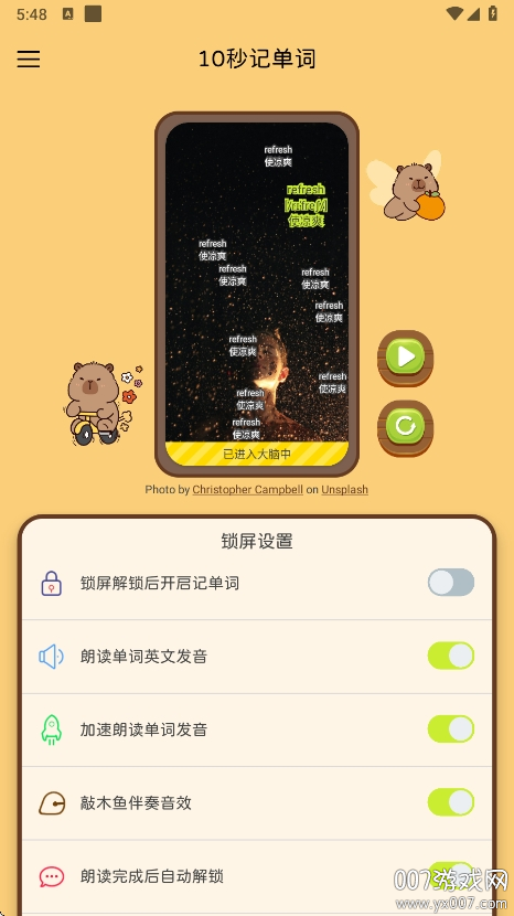 10秒记单词app是语言学习领域的突破性产品,它基于前沿的认知科学理论,将"被动学习"理念发挥到极致。每次用户解锁手机时,系统都会自动启动10秒记忆程序,通过精心设计的动态悬浮窗展示高频词汇,并配以生动形象的场景化图像和双语发音。其核心技术融合了"空间随机算法"和"艾宾浩斯遗忘曲线",确保用户在自然使用手机的过程中形成牢固记忆。经测试,用户每天只需正常解锁手机50次,就能轻松掌握1500+核心词汇,特别适合通勤族、备考学生和语言初学者。单词会以动态背景形式在屏幕不同位置闪现10次,这种设计打破了传统的位置依赖记忆模式,同时系统会根据用户记忆曲线智能调整复习频率,确保在最佳时间点进行复习巩固。