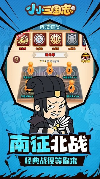 《小小三国志》是一款集趣味冒险与武将养成为一体的休闲策略手游,以独特的Q版风格重新演绎三国传奇。游戏脑洞大开的设计理念,将严肃的三国历史以轻松诙谐的方式呈现,所有你熟悉的三国名将都将以呆萌可爱的形象登场。创新的懒人挂机模式让你在忙碌的工作学习之余也能轻松升级,体验一统三国的成就感。精美的卡通渲染技术搭配流畅的骨骼动画,让每个角色都栩栩如生,充满魅力。丰富多样的玩法系统将带给你前所未有的三国体验,让你在欢乐中感受策略战斗的乐趣。