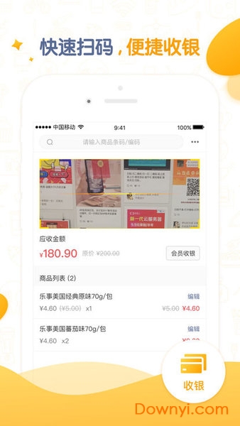 提供多种收银方式选择,支持扫码枪、手机扫码、现金收款等多种收款模式;与主流支付平台无缝对接,支持微信、支付宝等移动支付方式;特有的挂单功能特别适合餐饮、美容等服务行业使用;配合蓝牙小票打印机,可以实现收银、打印、记账一站式完成。