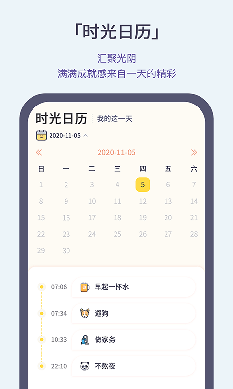 这款软件的功能设计处处体现着人性化理念。用户可以直接从丰富的习惯库中快速选择目标,省去繁琐的添加过程。内置的目标提醒和打卡功能,配合实用的备忘录和小日历工具,让计划执行变得轻松简单。软件还提供专业的数据统计功能,能自动分析执行情况并生成详细报告。通过云备份服务,您的所有数据都能得到安全保存。此外,您还可以创建任务清单、时间计划,实现学习管理、目标追踪等多种需求,无论是阅读打卡、睡眠管理还是学习计划,都能完美支持。